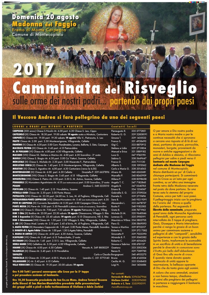 risuona ogni anno l’invito alla “Camminata del risveglio” al Santuario Madonna del Faggio (Eremo di Carpegna, comune di Montecopiolo PU). Siamo attesi e desiderati dalla Madonna domenica 20 agosto. Le partenze seguiranno il programma che i referenti delle comunità hanno stabilito. L’arrivo presso la croce sui prati del Santuario è alle ore 9.