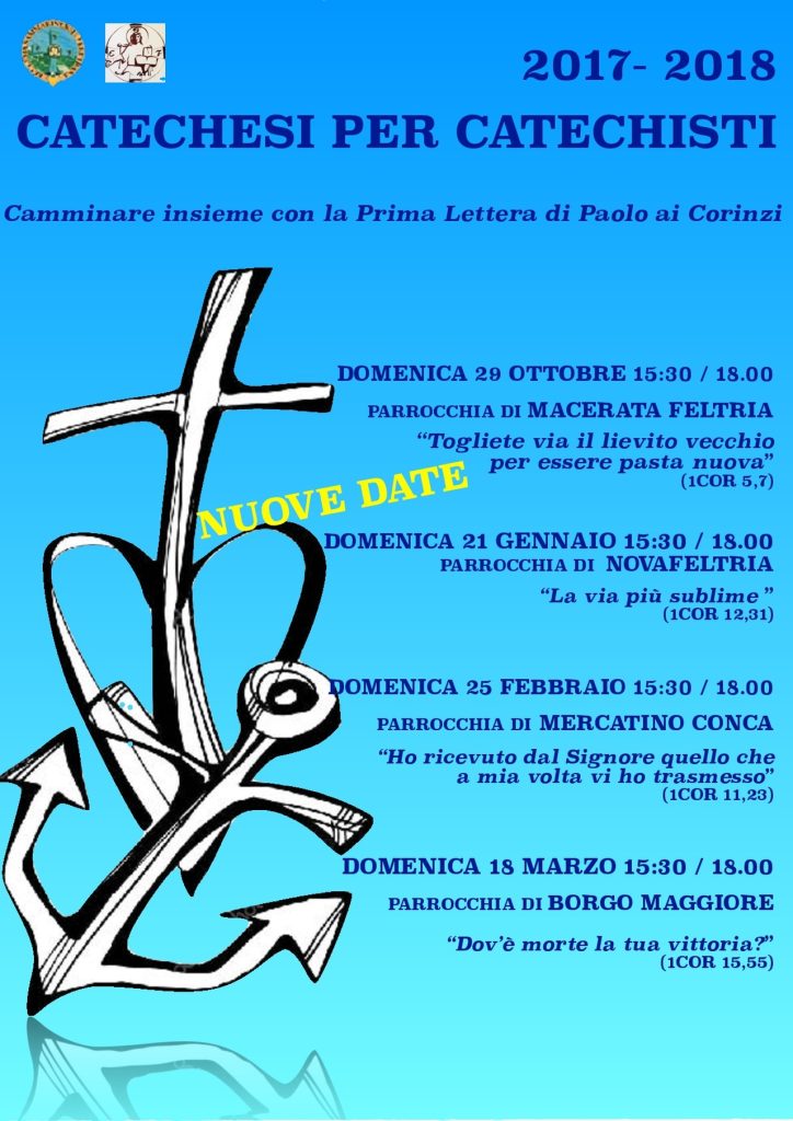 -"Camminare insieme con la Prima Lettera di Paolo ai Corinzi": catechesi per catechisti 2017-18. LE NUOVE DATE SONO: 21 gennaio, 25 febbraio, 18 marzo dalle ore 15:30 alle 18
