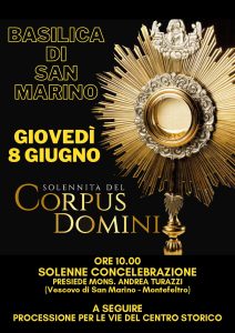 Giovedì 8 giugno alle ore 10 si celebrerà la Solennità del Corpus Domini a San Marino, presso la Basilica del Santo Marino. Presiede la liturgia S.E. Mons. Andrea Turazzi. A seguire, processione per le vie del centro…