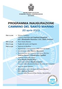 Giovedì 20 aprile alle ore 11:40 si terrà l'inaugurazione del "Cammino del Santo Marino" (aperta a tutti), un percorso che rientra in un progetto più ampio per la valorizzazione di San Marino come meta di Turismo Religioso, di pellegrinaggio, di preghiera e di devozione sulle orme del Santo Fondatore, con uno…