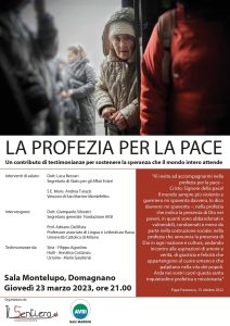 Giovedì 23 marzo alle ore 21 presso la "Sala Montelupo" di Domagnano (RSM) si terrà un incontro di riflessione intitolato: "La profezia per la pace. Un contributo di testimonianze per sostenere la speranza che il mondo intero attende". Intervengono il dott. Giampaolo Silvestri, Segretario Generale Fondazione AVSI e il prof.