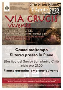 Venerdì 7 aprile a San Marino Città si terrà una Via Crucis "vivente" con la collaborazione delle Monache dell'Adorazione Perpetua. La partenza è prevista per le ore 21 dal convento dei Cappuccini…