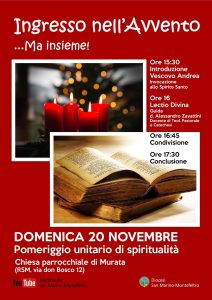 Domenica 20 novembre alle ore 15:30 presso la chiesa parrocchiale di Murata (San Marino Città, via don Bosco 12) si tiene un pomeriggio di formazione spirituale e liturgica in preparazione all'Avvento. Dopo il saluto del Vescovo, guiderà l’incontro don Alessandro Zavattini, professore di Teologia pastorale e Catechesi presso l’Istituto Superiore…