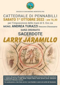 Sabato 1° ottobre alle ore 16:30 la Chiesa di San Marino-Montefeltro è in festa per l'ordinazione presbiterale del seminarista Larry Jaramillo per l'imposizione delle mani del Vescovo Andrea Turazzi nella Cattedrale di Pennabilli. Ci uniamo alla gioia e alla preghiera riconoscente di don Larry per il dono del sacerdozio e…