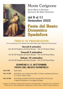 Dall'8 settembre inizia il Triduo in preparazione alla Festa del Beato Domenico Spadafora che si terrà domenica 11 settembre al Santuario del Beato a Monte Cerignone (PU). Domenica alle ore 11 S. Messa e celebrazione delle S. Cresime. Presiede il Vescovo Andrea. Nel pomeriggio alle ore 16 S.Messa celebrata dal…