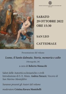 Sabato 29 ottobre alle ore 15:30, nella Cattedrale di San Leo, si terrà la presentazione del volume: “Leone, il santo dalmata. Storia, memoria e culto” a cura del prof. Roberto Monacchi. Saranno presenti gli autori con la moderatrice Cristina Ravara Montebelli. Ci sarà il saluto del Vescovo Andrea Turazzi…