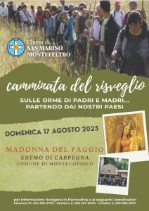 La “Camminata del Risveglio” è un’iniziativa che si svolge in parallelo all’antica tradizione della Festa del Santuario della Madonna del Faggio (Comune di Montecopiolo, Eremo di Monte Carpegna - PU): la domenica dopo la Festa dell’Assunzione della Beata Vergine Maria – quest’anno domenica 17 agosto –, dai borghi del Montefeltro,…