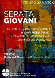 Venerdì 27 maggio alle ore 20:45 presso l'Oratorio Don Bosco di San Marino Città si terrà una serata con i giovani in occasione del 50° anniversario di ordinazione sacerdotale del Vescovo Andrea…