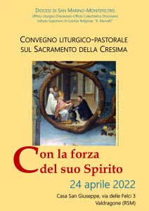 Domenica 24 aprile dalle ore 9:30 l'Ufficio Liturgico Diocesano con la collaborazione dell'Ufficio Catechistico Diocesano e dell'ISSR "A. Marvelli" organizzano un convegno liturgico-pastorale sul sacramento della Cresima presso la Casa San Giuseppe a Valdragone (RSM)…