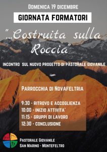 Domenica 19 dicembre dalle ore 9:30 presso la parrocchia di Novafeltria si terrà un incontro con i formatori dei giovani per definire il nuovo progetto di pastorale giovanile…
