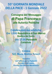 L'Ufficio di Pastorale Sociale e del Lavoro organizza per il 1° gennaio la Consegna del Messaggio della Pace di papa Francesco alle Autorità in Basilica del Santo a San Marino Città (RSM) alle ore 12 e in Cattedrale a Pennabilli alle ore 17. Presiede le celebrazioni eucaristiche il Vescovo Andrea…