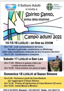 L'Azione Cattolica Diocesana Settore adulti organizza dal 14 al luglio un campo scuola, online e in presenza sul tema: "Spirito Santo, anima della missione". Il campo è aperto a tutti!…