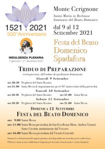 Dal 9 al 12 settembre si terrà a Monte Cerignone (PU) il Triduo in preparazione alla festa del Beato Domenico Spadafora nel cinquecentenario della morte. Si ricorda che è possibile lucrare l'indulgenza plenaria visitando il Santuario…