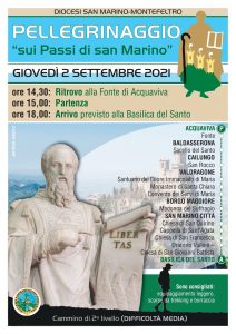 Giovedì 2 settembre si terrà un pellegrinaggio "sui passi del santo Marino”: ritrovo alle ore 14:30 alla Fonte di Acquaviva (secondo la tradizione luogo dei primi Battesimi celebrati dal Santo), per partire alle ore 15. Arrivo in Basilica intorno alle ore 18…