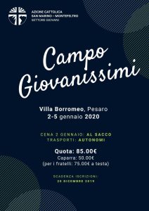 L'Azione Cattolica Settore Giovani organizza un campo per giovanissimi dal 2 al 5 gennaio 2020 presso la "Villa Borromeo" di Pesaro. Le iscrizioni sono aperte fino al 20 dicembre 2020…