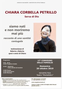 Domenica 20 ottobre dalle ore 9:30 presso il teatro "Montefeltro" di Novafeltria si terrà il 17° Convegno delle famiglie. Si ascolterà la testimonianza di una coppia di amici della Serva di Dio Chiara Corbella Petrillo: "Siamo nati e non moriremo mai più"…