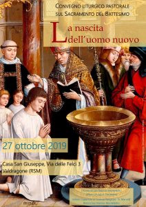 Domenica 27 ottobre presso la "Casa San Giuseppe" di Valdragone (RSM) l'Ufficio Liturgico Diocesano organizza un convegno liturgico-pastorale sul Battesimo, tema dell'anno pastorale 2019/2020. Clicca per scaricare il depliant illustrativo…