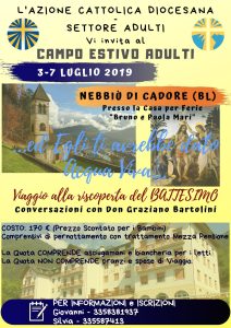 Dal 3 al 7 luglio a Nebbiù di Cadore si terrà un campo scuola per tutti gli adulti organizzato dall'Azione Cattolica. Le meditazioni saranno tenute dall'Assistente Adulti diac. Graziano Bartolini e sarà presente il Vescovo Andrea…