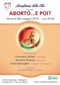 L'associazione "Accoglienza della vita" organizza un incontro sul tema: "Aborto... e poi?" venerdì 24 maggio ore 20:45 a Valdragone (RSM) presso l'Hotel San Giuseppe…