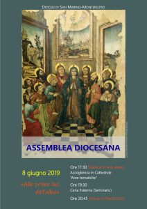 Sabato 8 giugno a partire dalle ore 17:30 a Pennabilli si terrà l'Assemblea diocesana di verifica. Dopo la suddivisione in aree per il lavoro nei gruppi e la cena di condivisione l'assemblea si prolungherà nella Veglia di Pentecoste. Presiede il Vescovo Andrea…