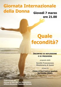 Giovedì 7 marzo ore 21 presso la chiesa parrocchiale di Serravalle si terrà un incontro di riflessione e preghiera, organizzato dall'Ufficio diocesano di Pastorale Sociale, per la GIORNATA INTERNAZIONALE DELLA DONNA dal titolo: «Quale fecondità?»…