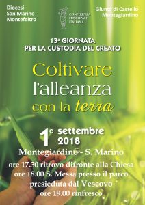 Sabato 1 settembre a Montegiardino si celebrerà la Giornata diocesana per la Custodia del Creato. Alle ore 17: 30 discorsi delle autorità e del responsabile dell'Ufficio di Pastorale Sociale, del Lavoro e della Custodia del Creato. Alle ore 18 il Vescovo Andrea presiede la celebrazione eucaristica…