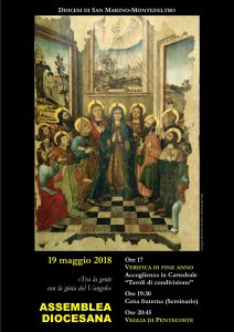 SABATO 19 MAGGIO dalle ore 17 si terrà a Pennabilli presso la Cattedrale l'ASSEMBLEA DIOCESANA DI VERIFICA sull'anno pastorale 2017/18 e la VEGLIA DI PENTECOSTE. Siamo tutti invitati! Riconoscere, raccontare, ringraziare: questi i verbi di una coniugazione diocesana!…