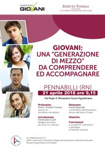 Sabato 21 aprile ore 9:15 presso il monastero delle Agostiniane di Pennabilli si terrà l'incontro di formazione organizzato dall'associazione Amici dell'Università Cattolica dal titolo: "Giovani: una generazione di mezzo da comprendere ed accompagnare". Relatore: dott.ssa Paola Bignardi…