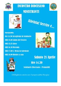 Sabato 21 aprile dalle ore 14:30 il Centro Diocesano Vocazioni organizza a Pennabilli (in Seminario) la Giornata dei ministranti. Alle ore 15:15 gioco insieme e alle ore 17 S.Messa in Cattedrale presieduta dal Vescovo Andrea…