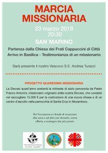 Venerdì 23 marzo ore 20:30 con partenza dalla chiesa dei Frati Cappuccini di Città si terrà la marcia missionaria. In basilica del Santo Marino si ascolterà la testimonianza di un missionario. La marcia è presieduta dal Vescovo Andrea…