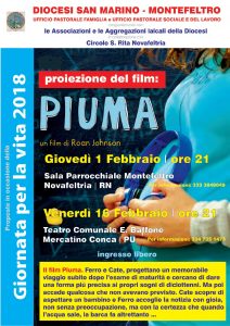 In occasione della Giornata della vita viene proposta la proiezione del film "Piuma": Giovedì 1 febbraio ore 21 a Novafeltria presso la Sala parrocchiale e venerdì 16 febbraio ore 21 a Mercatino Conca presso il Teatro comunale "E.Baffone"…