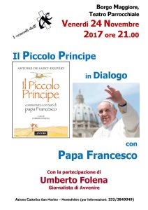 Venerdì 24 novembre ore 21 a Borgo Maggiore (teatro parrocchiale) per il ciclo "I Venerdì dell'AC" si terrà l'incontro: "Il piccolo principe in dialogo con papa Francesco". Con la partecipazione di Umberto Folena…