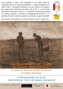 Giovedì 16 novembre ore 21 presso la Sala Montelupo di Domagnano (RSM) si terrà una serata di riflessione su Carità, 1a Giornata Mondiale dei Poveri e Colletta alimentare…