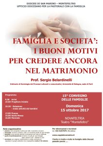 Domenica 15 ottobre dalle ore 9:30 alle 16:00 a Novafeltria presso il teatro parrocchiale si terrà il 15° convegno delle famiglie sul tema: "Famiglia e società: i buoni motivi per credere ancora nel matrimonio"…