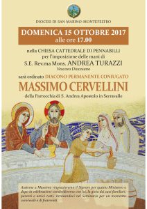 Domenica 15 ottobre ore 17 in Cattedrale a Pennabilli per l'imposizione delle mani di S.E. Mons. Andrea Turazzi sarà ordinato diacono permanente Massimo Cervellini della parrocchia di Sant'Andrea in Serravalle…