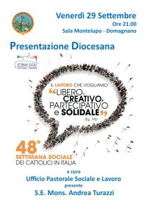 Venerdì 29 settembre alle ore 21 presso la Sala Montelupo a Domagnano (RSM) si terrà la presentazione diocesana della 48° Settimana Sociale dei Cattolici in Italia. Sarà presente il vescovo Andrea insieme ai delegati diocesani…