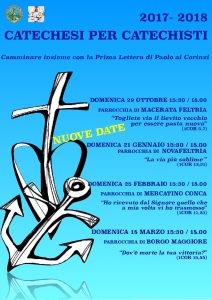 "Camminare insieme con la Prima Lettera di Paolo ai Corinzi": catechesi per catechisti 2017-18. LE NUOVE DATE SONO: 21 gennaio, 25 febbraio, 18 marzo dalle ore 15:30 alle 18…
