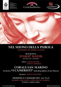 All'interno della "settimana mariana" per il centenario delle apparizioni di Fatima, domenica 14 Maggio ore 21.15 nella Basilica del Santo la Corale San Marino e l'orchestra i Cameristi della Repubblica di San Marino offrono lo "Stabat Mater" di Karl Jenkins. Ingresso ad offerta libera.