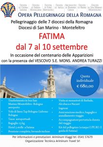 La diocesi di San Marino-Montefeltro organizza un pellegrinaggio a Fatima dal 6 al 9 settembre 2017 in occasione del primo centenario delle apparizioni di Fatima…