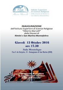 Giovedì 13 ottobre alle ore 17.30 presso la Sala Montelupo del Castello di Domagnano (RSM) verrà inaugurato il nuovo ISSR interdiocesano. Prolusione di S.E. Mons. Vincenzo Zani…