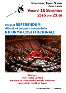 Venerdì 16 settembre presso il Teatro sociale di Novafeltria si terrà il primo incontro della serie "I Venerdì dell'AC" in preparazione del Referendum in Italia sulla Riforma costituzionale…