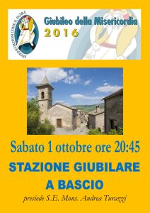 Sabato 1 ottobre alle ore 20:45 si terrà la Stazione Giubilare a Bascio. La partenza del pellegrinaggio sarà dalla Celletta ai piedi della salita che porta alla chiesa di Bascio Alto…