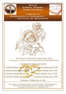 Venerdì 18 novembre alle ore 21 presso i locali della parrocchia di Borgo Maggiore inizia il cammino in preparazione al sacramento del matrimonio per il vicariato di San Marino…