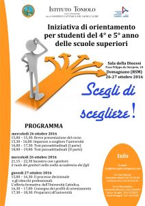 Mercoledì e giovedì 26-27 ottobre presso la Sala della Diocesi a Domagnano si terrà la Due giorni di orientamento per gli studenti della 4° e 5° Superiore…