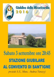 Sabato 3 settembre ore 20:45 Stazione giubilare presso il Convento di Sant'Igne. Partenza dalla Celletta all'inizio della strada sterrata che porta al Convento…