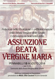 Lunedì 15 agosto alle ore 11:15 nel Santuario della Beata Vergine Maria delle Grazie in Pennabilli Solenne celebrazione eucaristica presieduta dal Vicario Generale Mons. Elio Ciccioni…