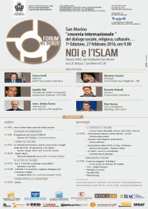 Sabato 27 febbraio dalle ore 9 alle 17.30 Forum del dialogo sociale, religioso, culturale. Presso Palazzo SUMS, Sala Fondazione San Marino…