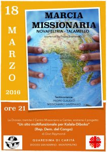 Venerdì 18 marzo alle ore 21 si terrà la Marcia-Veglia missionaria da Novafeltria e Talamello. Quest'anno il sostegno andrà al progetto "Un sito multifunzionale per Kalala-Diboko" (Repubblica Dem.del Congo)…