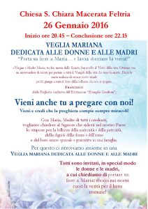 Martedì 26 gennaio alle ore 20:45 presso la chiesa di Santa Chiara a Macerata Feltria si terrà una Veglia mariana dedicata alle donne e alle madri…