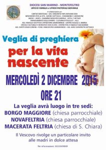 Mercoledì 2 dicembre Veglia per la vita nascente in contemporanea nei tre vicariati. Invito speciale alle mamme in "dolce attesa"…